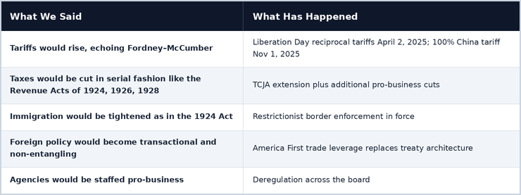 We told you, repeatedly that the Coolidge and Trump platforms would rhyme on every axis that matters. Not thematically. Operationally.